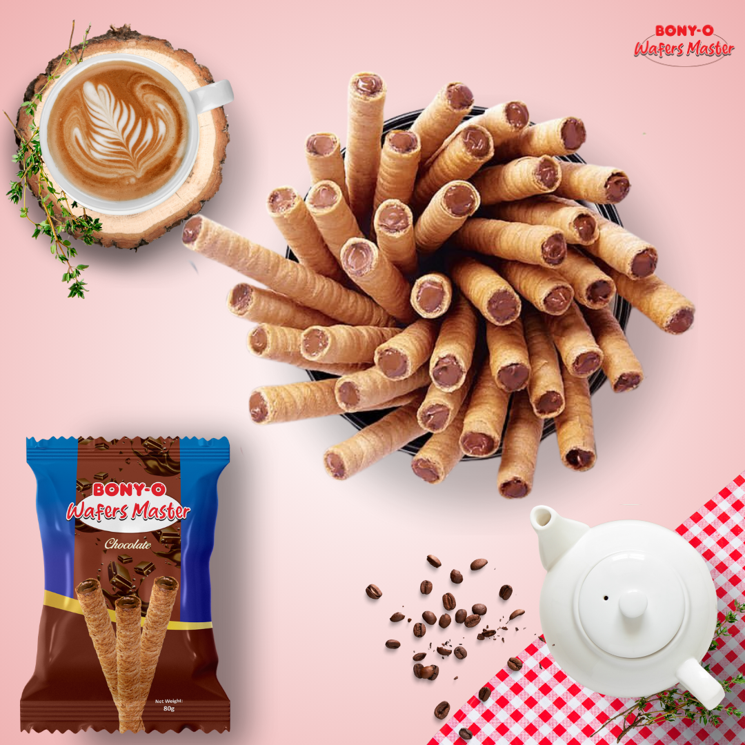 Indulge in the ultimate chocolate experience with BONY-O Wafers Master Chocolate 80g. Each pack is filled with irresistibly crisp wafer rolls, generously coated in rich, velvety chocolate. Perfect for snacking or sharing, these delightful treats promise to satisfy your sweet cravings anytime, anywhere. Elevate your snack game with the masterful taste of BONY-O Wafers!